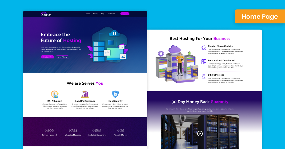 Elevate your hosting business with Keepter, the ultimate hosting and technology template kit for creating a professional, high-performing website.